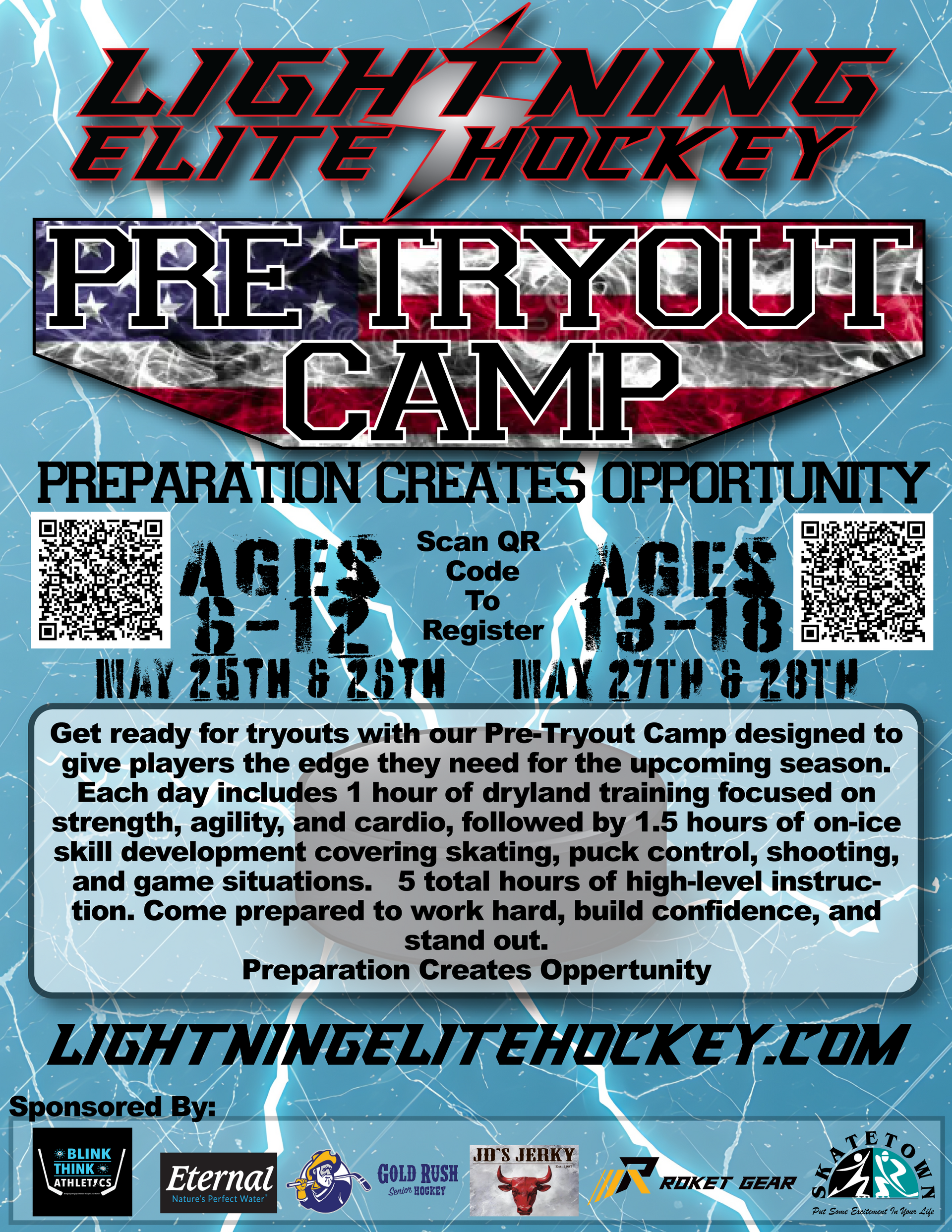 Welcome to Lightning Elite Hockey Camps and Clinics—your ultimate destination for comprehensive skill development on the ice! Whether you're joining one of our intensive 3-5 day camps or our engaging one-day-a-week clinics, you'll work on every facet of the game. Our expert coaching focuses on skating, shooting, stickhandling, body control, edge control, positioning, power skating, hockey IQ, and much more. Join us to elevate your game, sharpen your skills, and experience hockey training like never before.